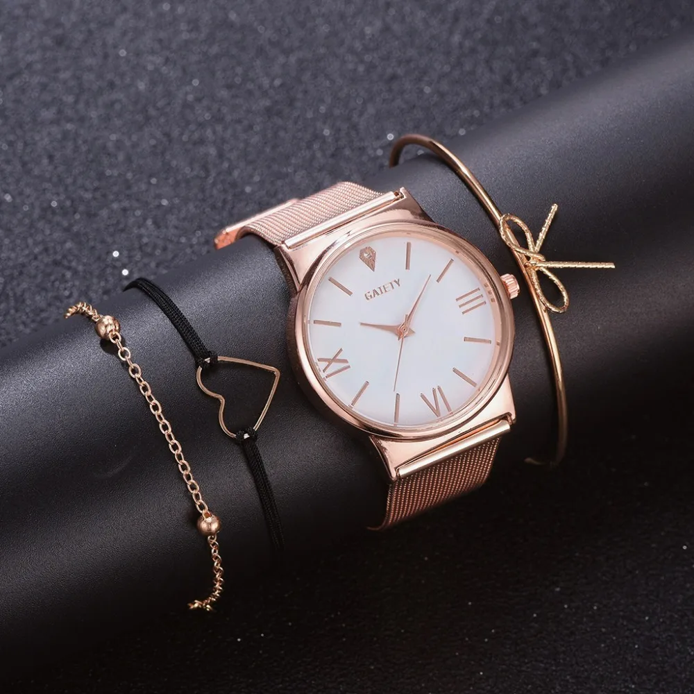 | GAIETY Fashion Brand 4pcs/Set Dress Women Rose Gold Watches Luxury Ladies Wrist Watch Female Quartz Clock Bracelet reloj mujer |