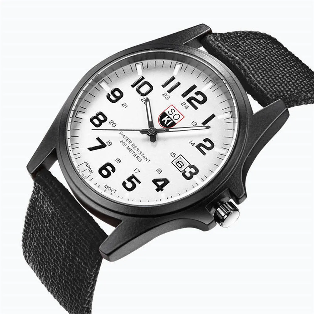 | Luxury Mens Watches Date Business Watch Nylon Strap Analog Quartz Wrist Watch Waterproof Stainless Steel Mens Sport Watches 2020 |
