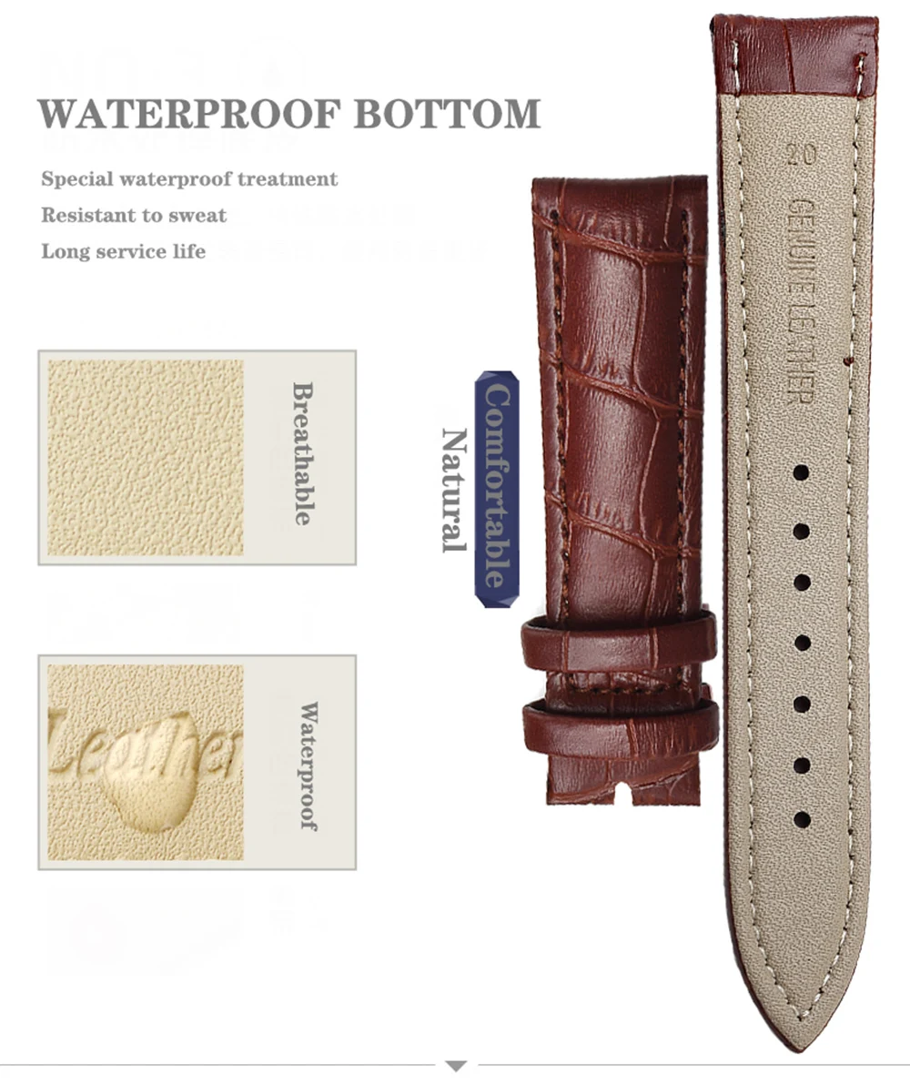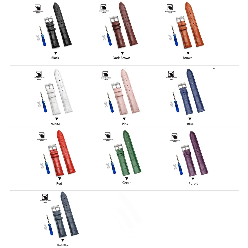 | Comfortable Cowhide Genuine Leather Watch Strap 12/14/16/18/20/22/24 mm Watch Pin buckle Band Soft Wrist Belt Bracelet + Tool |