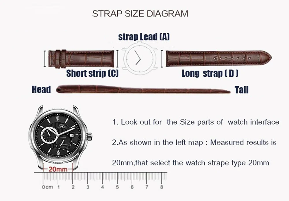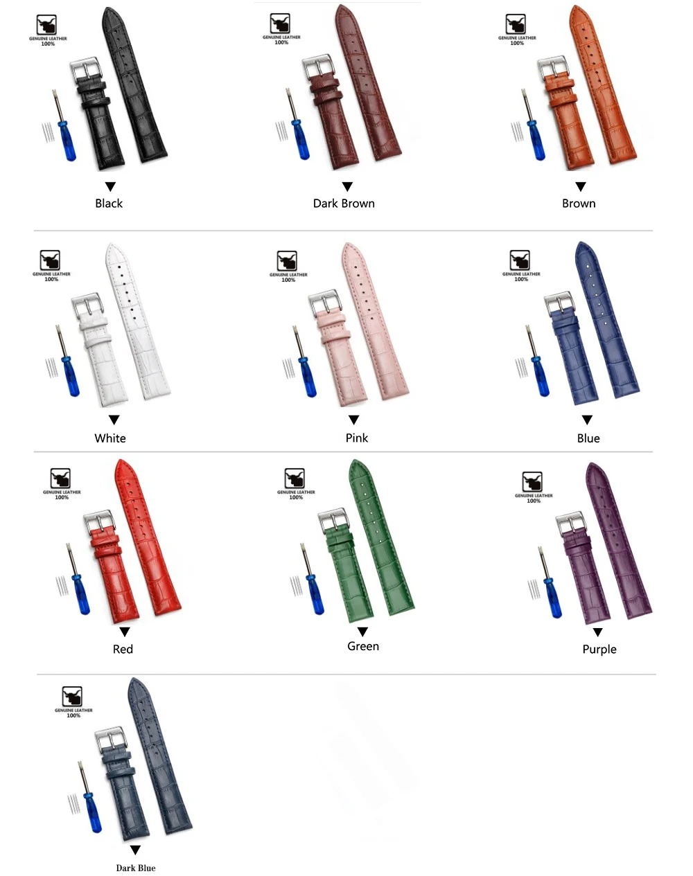 1 * Genuine leather watch strap + 1 * Spring bars replace tool + 4 * Spring bars+1* Plastic Box