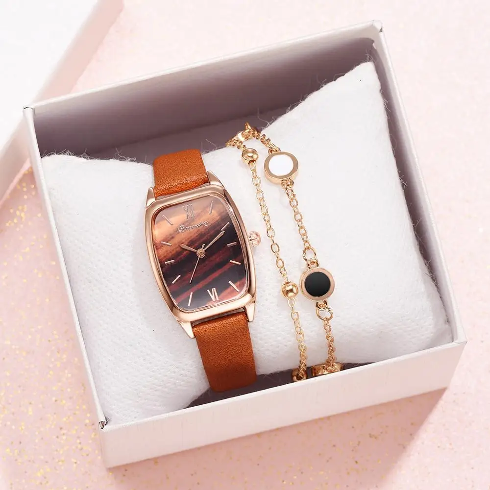 | Relojes Para Mujer Ladies Leather Watch Luxury Watches Quartz Watch Marble Dial Casual Women Bracele Watch Bayan Kol Saati |