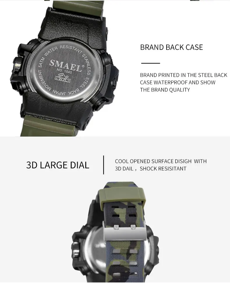 The best product you are looking for is "SMAEL Fashion Sport Watch Men Alarm Clock Camouflage Waterproof Week Display Men Watches Digital Watch relogio masculino 1545B". This product is available and ready to be purchased. Get attractive discounts every time you shop in our store (aliexpress.com). Aliexpress also provides a coupon of $ 3 for the first buyer to shop there. don't forget to bookmark our store page so you can go shopping again anytime..