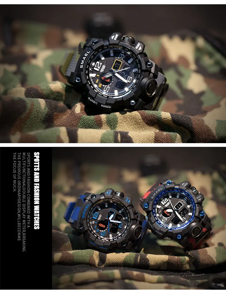 | SMAEL Fashion Sport Watch Men Alarm Clock Camouflage Waterproof Week Display Men Watches Digital Watch relogio masculino 1545B |