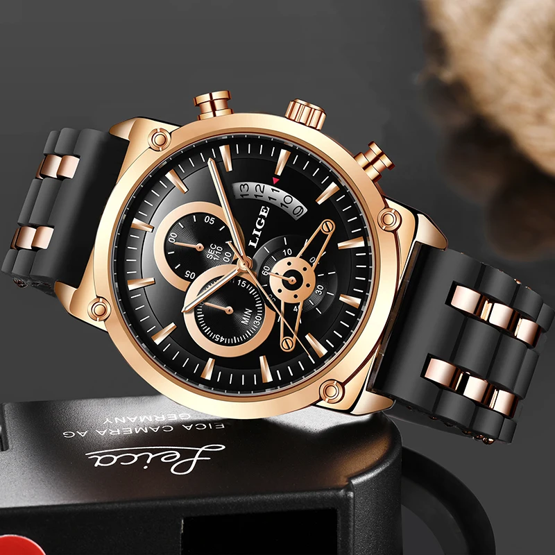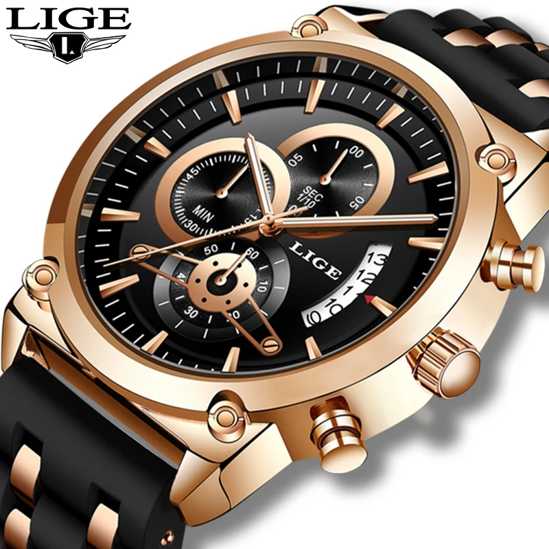 | LIGE New Classic Black Mens Watches Top Brand Luxury Watch For Man Military Silicone Waterproof Quartz Clock Relogio Masculino |