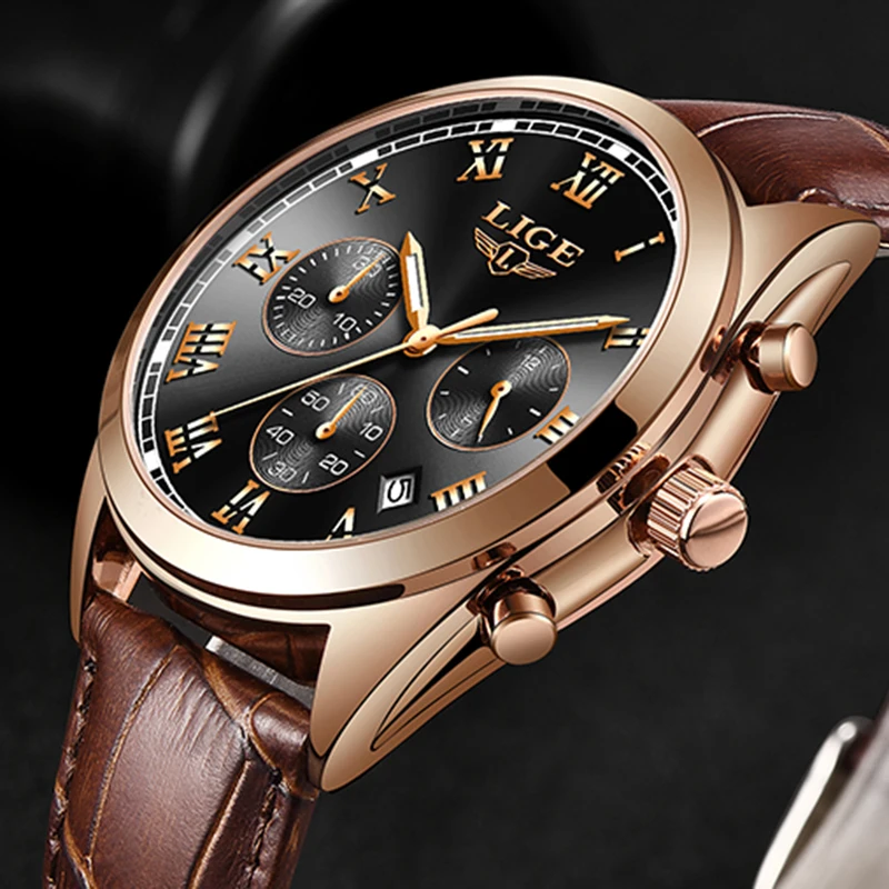 2020 LIGE Mens Watches Top Brand Luxury Casual Leather Quartz Clock Male Sport Waterproof Watch Gold Watch Men Relogio MasculinoBuy Now On Aliexpress