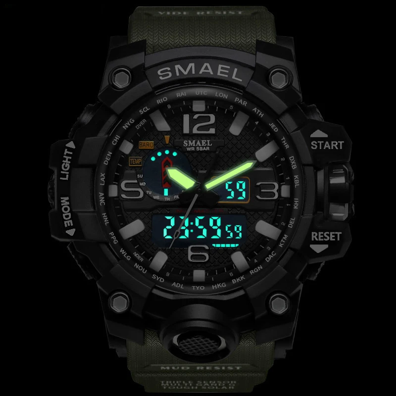 SMAEL Men's Watches New Style Brand Men LED Digital Quartz Watch Waterproof All Black Military Sport Man Clock Relogio Masculino