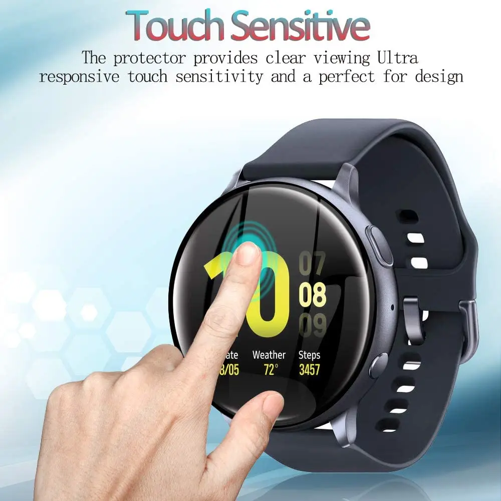 3D Full Screen Protector Film for Samsung Galaxy Watch Active 2 40mm 44mm HD Anti-Bubble Soft Curved Edge Screen Protector Cover